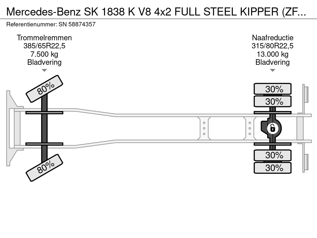 Mercedes-Benz SK 1838 K V8 4x2 FULL STEEL KIPPER (ZF16 MANUAL GEARBOX / FULL STEEL SUSPENSION / REDUCTION AXLE / P.T.O.)