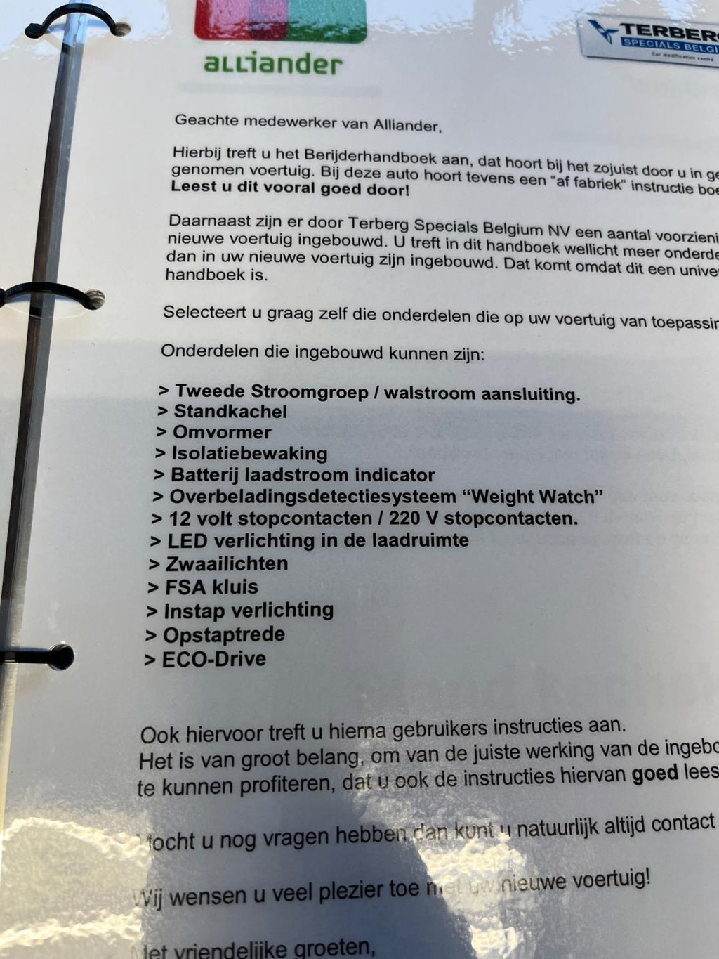 ABS, Airbag bestuurder, Airbag passagier, Airconditioning, Armsteun bestuurder, Bestuurdersstoel in hoogte verstelbaar, Boordcomputer, Centrale vergrendeling, Climate control, Cruise control, Elektrische bedienbare ramen voor, Elektrische verstelbare buitenspiegels, Nationale autopas, Regensensor, Reserve sleutel, Startonderbreker, Trekhaak, Warmtewerend glas, Zijschuifdeur rechts