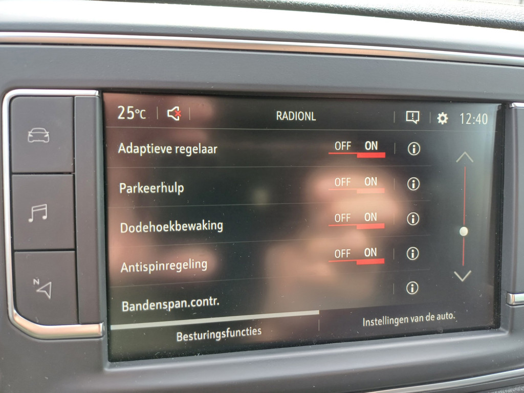 ABS, Airbag bestuurder, Airbag passagier, Airconditioning, Armsteun bestuurder, Audiobediening aan stuur, Bestuurdersstoel in hoogte verstelbaar, Boordcomputer, Centrale vergrendeling, Climate control, Cruise control, Elektrische bedienbare ramen voor, Elektrische verstelbare buitenspiegels, GSM carkit, Metallic lak, Mistlampen voor, Nationale autopas, Navigatiesysteem, Parkeersensor, Regensensor, Reserve sleutel, Startonderbreker, Stuur in hoogte verstelbaar, Stuurbekrachtiging, Trekhaak, Warmtewerend glas, Xenon verlichting, Zijschuifdeur rechts