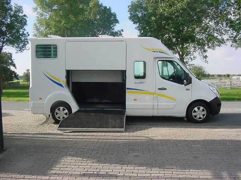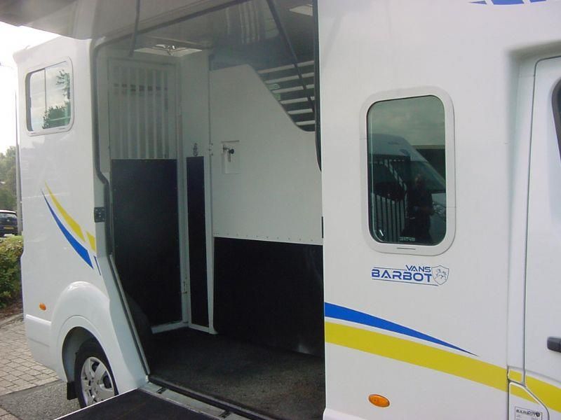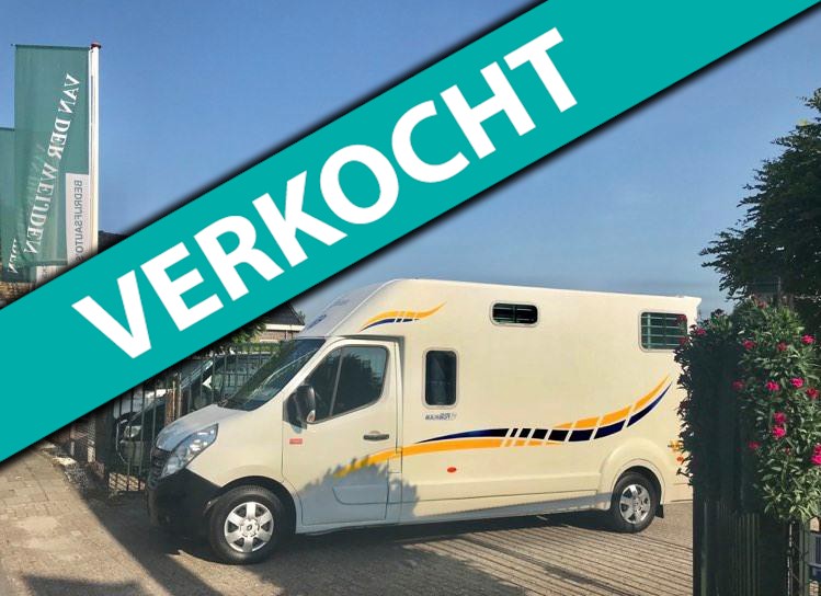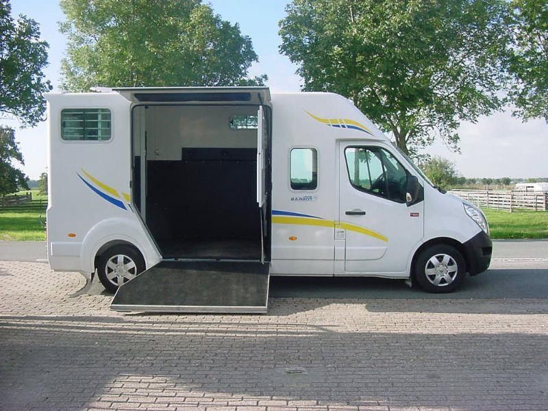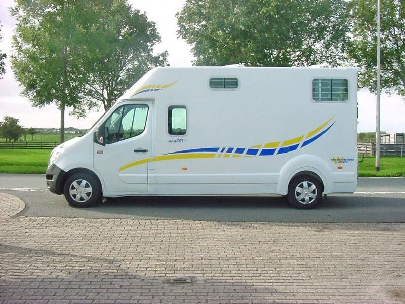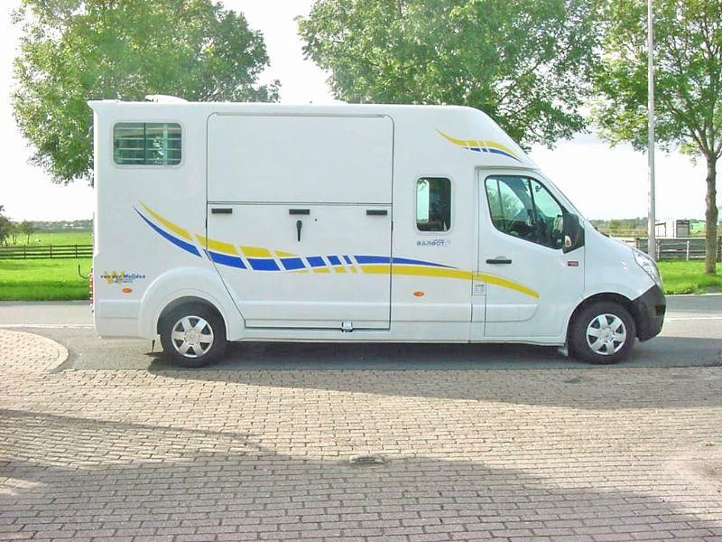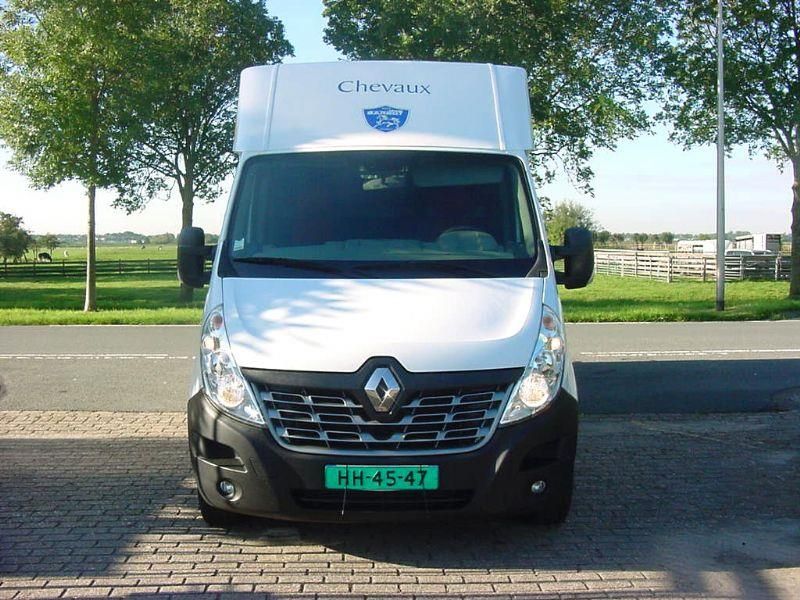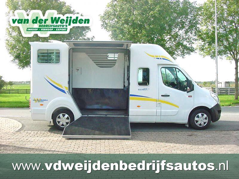 Renault Master 2.3D "Barbot" Paardenauto, HENGSTENUITVOERING, Dubbele Cabine, Bouwjaar 19-11-2015, 2.299 cm3., 120 kw., 163 PK., 6 versnellingen, 2.615 kg., 211.094 km., laadvermogen 885 kg., Euro 5, trekhaak met trekkracht van 2.500 kg., mistlampen voor, armsteuntje bij bestuurders- en passagiersstoel, airbag bestuurder, 5 X hoofdsteunen, 2 sleutels met handzender, centrale vergrendeling met afstandsbediening, elektrische ramen, elektrische buitenspiegels, Cruise Control, Airco, Bluetooth, MP3 radio en USB, gesloten achterdeur met 3e remlicht, beschermtralies bij de achterlampen, raampje in tussenwand van cabine naar paardengedeelte met tralies, gordijn/kleerhang rail links en rechts in de cabine, grote opbergruimte boven de bestuurder- en passagiersstoel, 2 kleerhang haakjes in de cabine, verlichting in de cabine, bank in de cabine is te transformeren naar ligbed, ramen links en rechts in de cabine, de auto is van de 2e eigenaar afkomstig