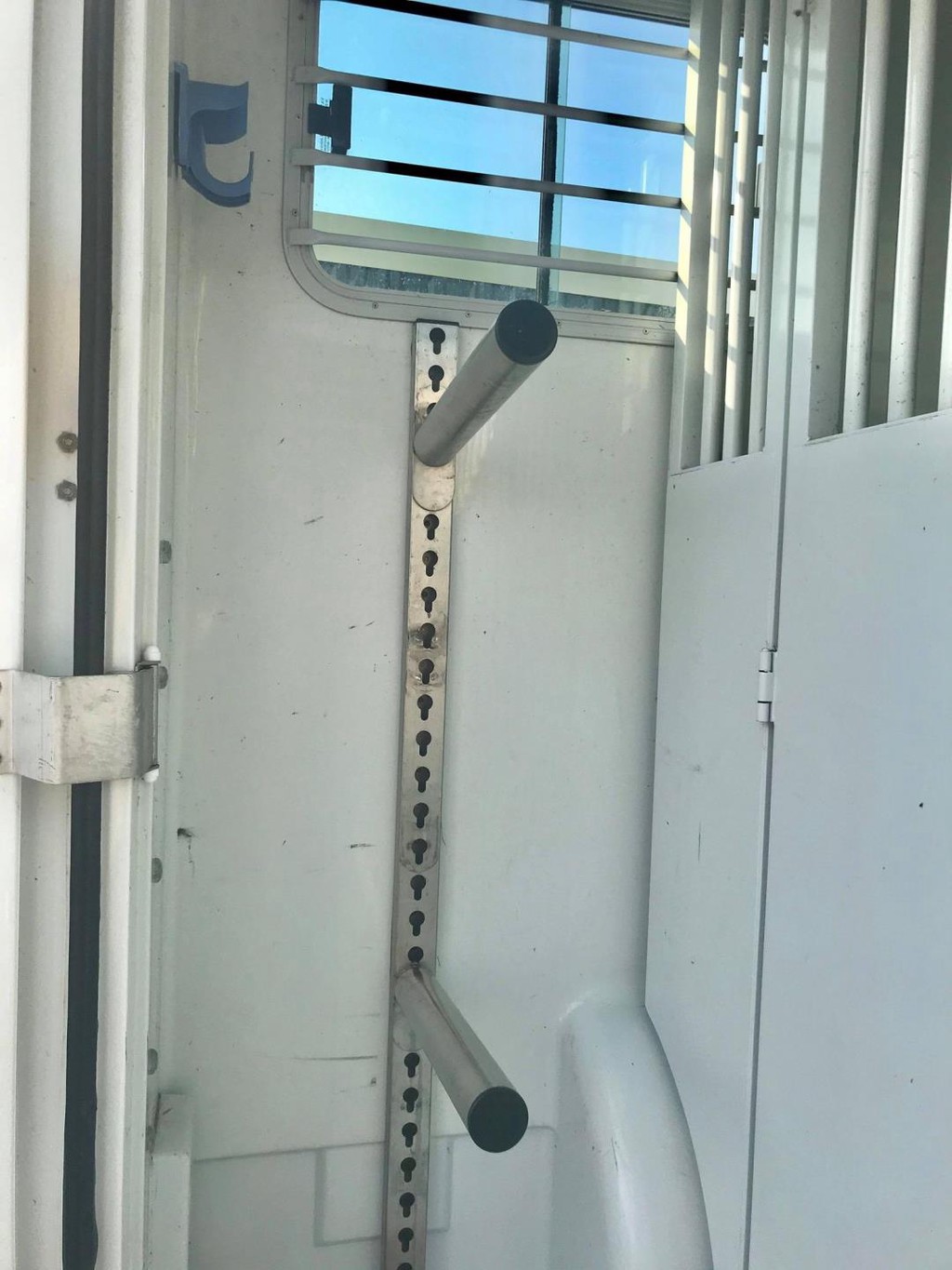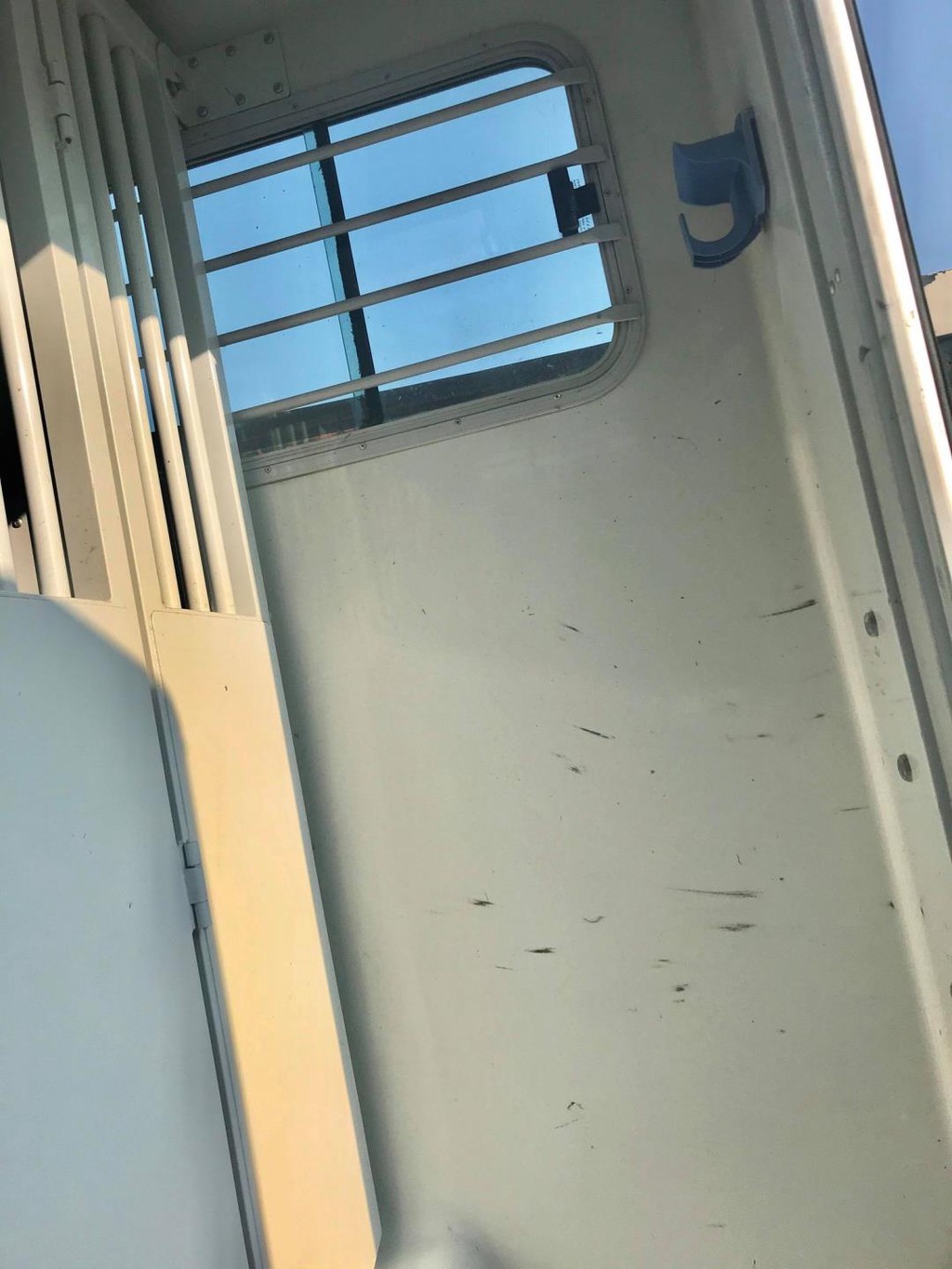 vast raam met beschermtralies van cabine naar paardengedeelte