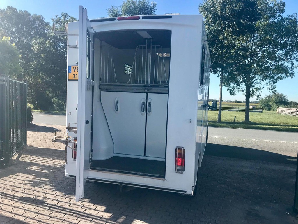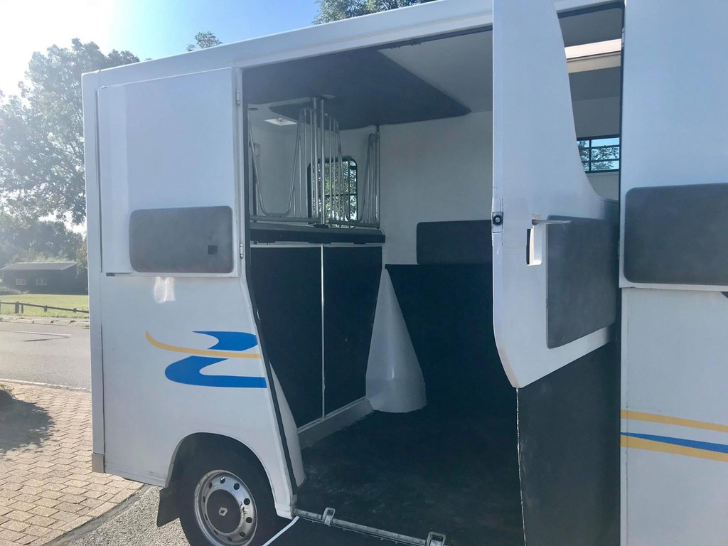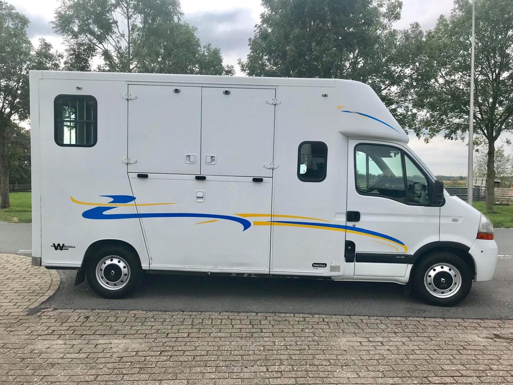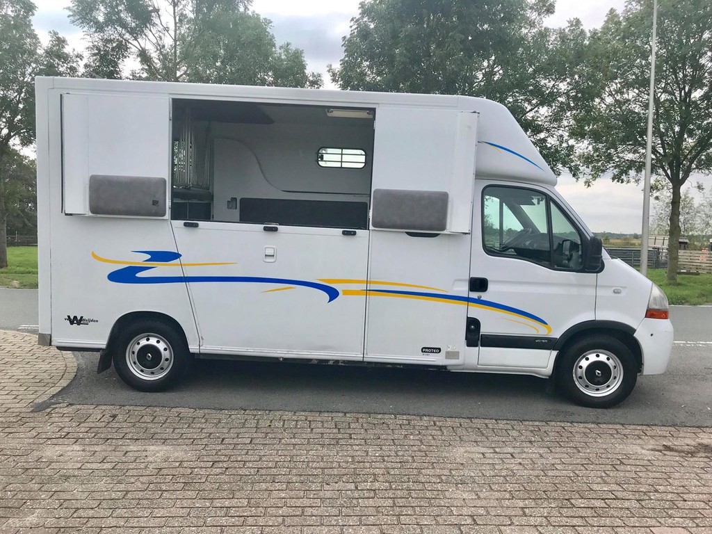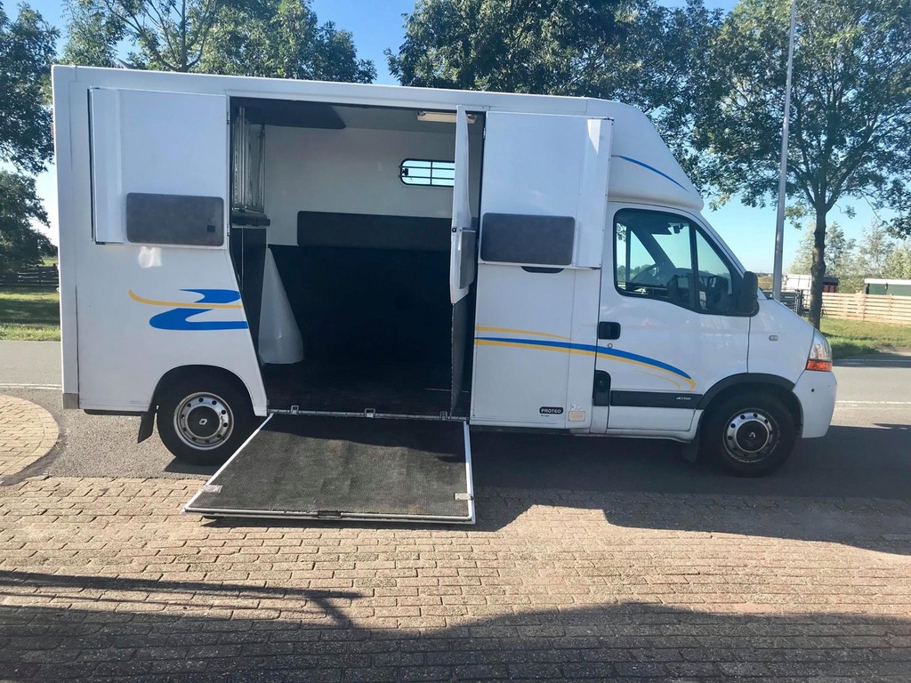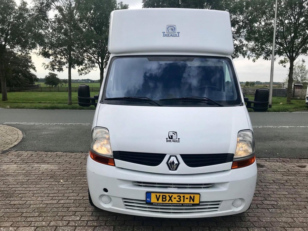 Master 2.5 D Theault Proteo 2 Paards paardenauto met dubbele Cabine en 2 slaapbanken, 23-02-2007, 2.464 cm3., 107 KW., 146 PK., apk t/m 28-06-2020, trekhaak met trekkracht van 2.000 kg., laadvermogen 1.000 kg., airbag bestuurder, toerenteller, 6 versnellingen, elektrische ramen, elektrische buitenspiegels, centrale vergrendeling met afstandsbediening, cruise control, 265.609 km., 2e eigenaar afkomstig, radio/cd speler, 3e remlicht achter, brandblusser cabine, armsteuntje passagiersstoel, Nieuwe distributieriem en spanrol!!!