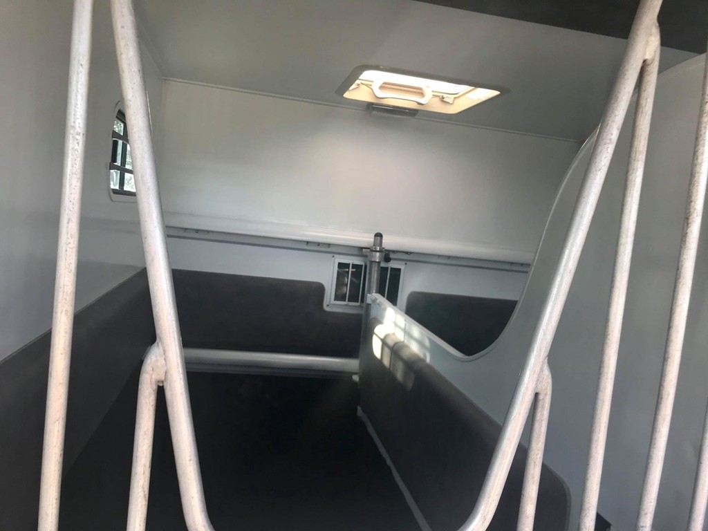 temperatuurmeter voor in het paardengedeelte, grote ventilator, 2 ventilatie luikjes, 1 groot kantel zonnedak, 2 schuifraampjes links, 1 schuifraampje rechts, 1 schuifraampje in achterdeur, rondom stootkussens, sulky supports, 2 bind ogen achter, 2 hoofdstelhaken, weefrekken, rubberen anti slip vloer, tussenschot zeer makkelijk verstelbaar met rail systeem.